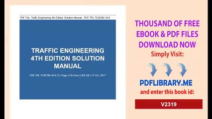 Traffic Engineering 4th Edition Solution Manual Pdf