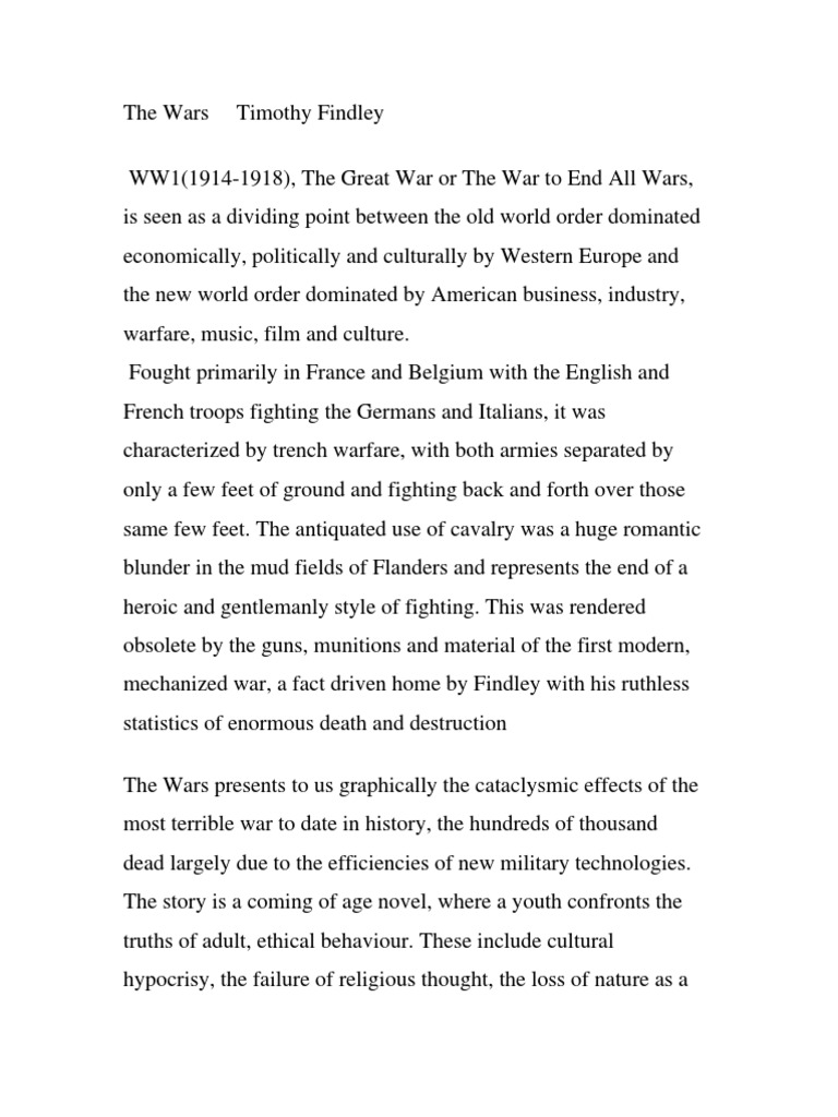 Timothy Findley The Wars Essay
