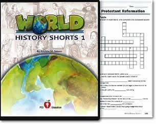 World history shorts 1 features 30 one page stories or shorts followed by activity sheets that reinforce the information.