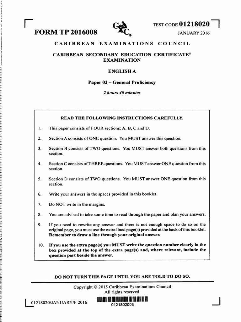 Csec English A Syllabus Caribbean Examinations Council