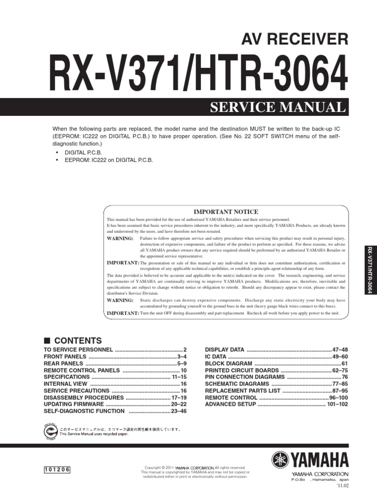 Yamaha Rx V371 Service Manual Pdf